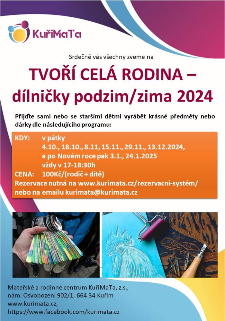 Lekce tvoření rodičů s dětmi proběhou od října 2024 a to v termínech: