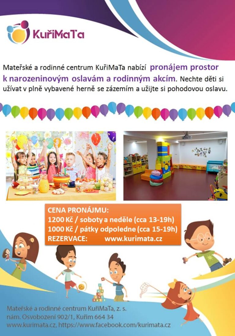 Mateřské a rodinné centrum KuřiMaTa nabízí pronájem prostor k narozeninovým oslavám a
